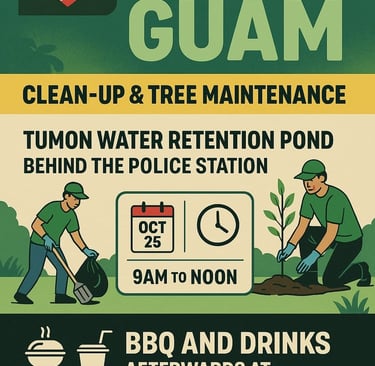 On October 25, we invite you to join us for a vital cleanup and tree maintenance event at the Tumon Water Retention Pond. This initiative aims to preserve and protect our precious water resources while enhancing the local ecosystem. Your participation can make a significant difference!